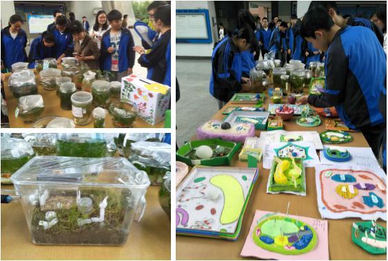4月19日下午(5:30—6:30),八年级生态瓶和七年级细胞模型的优秀作品在太阳门进行了全校展示。颜色亮丽的各种创意细胞模型和精美灵动的生态瓶吸引了许多同学和老师驻足观看,他们对这些作品称赞不已,并纷纷为心仪的作品投上了宝贵的一票。