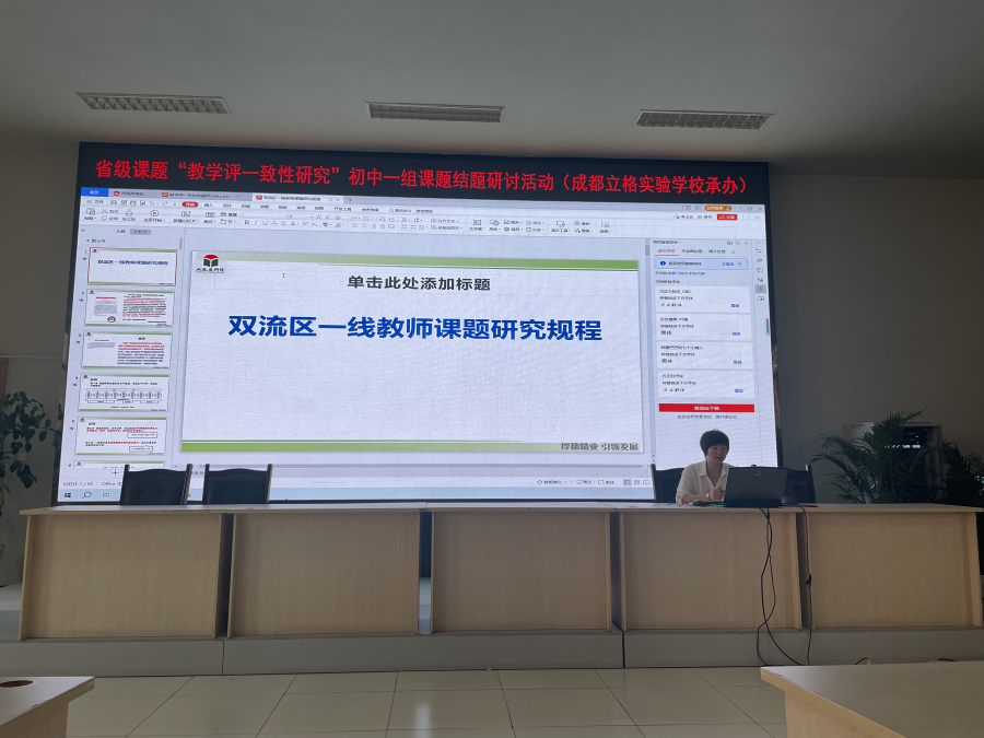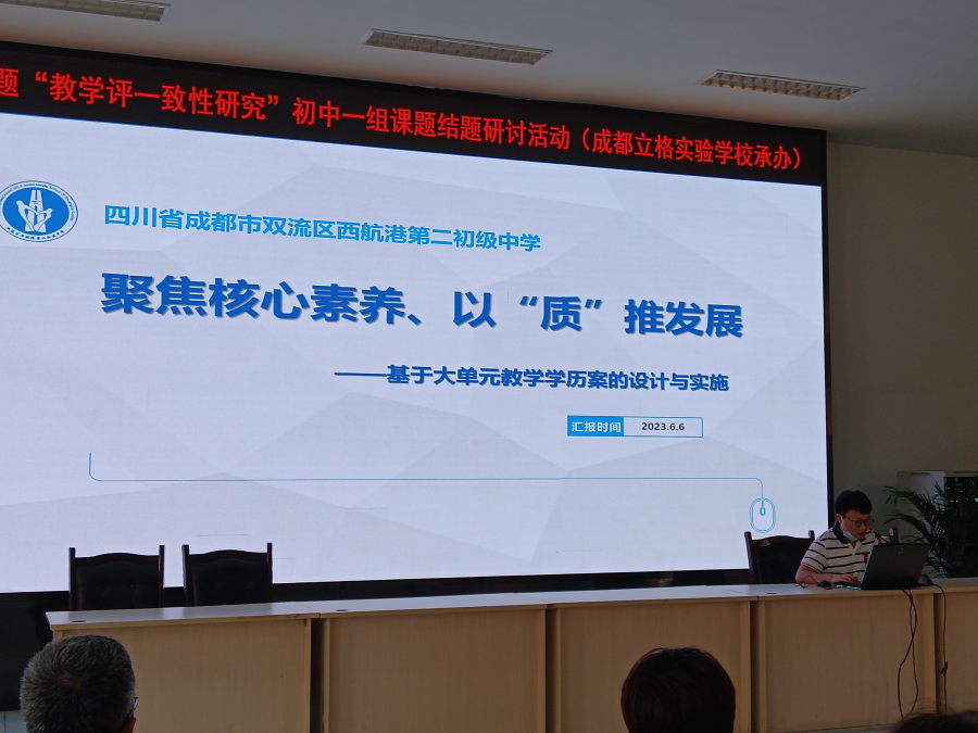 2023年6月6日下午,省级课题“区域开展基于课程标准的教学评一致性的实践研究”双流区初中第一联组课题结题专题研讨会在成都市双流区立格实验学校学术厅举行,会议由成都立格实验学校教学评一致性研究课题组长韩科老师主持,参会人员有双流区教科院教育改革研究中心易恩主任,双流区教学评一致性研究初中第一联组负责人、成都芯谷实验学校教师与课程建设中心李军主任,成都市双流区立格实验学校教科室文传福主任,以及成都立格实验学校、成都芯谷实验学校、西航港一中、西航港二中“教学评一致性研究”科研共同体课题负责人、主研教师。