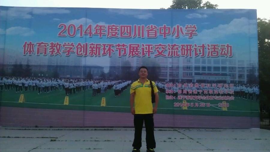 2014年5月25日至27日,由四川省教育科学研究所举办的2014年度四川省中小学体育教学创新环节展评交流研讨活动在遂宁高级实验学校举行。本次大赛从说课、教学创新环节片断展示、专家现场点评三环节进行,评委现场打分。此次活动各地市州高度重视、积极参与,全省21个地市州体育教研员和体育教师1000余人到现场观摩。四川省教科所体育教研员邱永诚老师、成都市教育局体艺卫处吴小刚处长等体育界专家到会参与大赛评比并进行了学术指导。经过各县、市的层层选拔,来自全省21个地市州的52位中小学体育教师参加了本次大赛决赛,我校优秀青年教师王华荣获大赛一等奖。