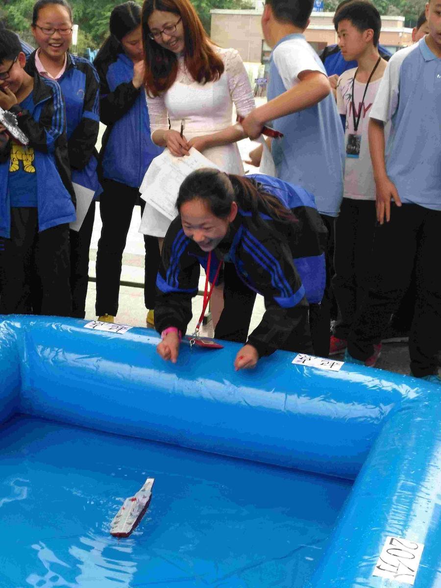各个参赛班级选手在老师的指导下亲自制作组装航海模型,然后比赛。比赛一开始,平静的水面顿时热闹起来。有的船身轻如燕,有的体态悠然,有的仿佛害羞了一直在打转,惹得大家一阵阵的掌声与笑声,整个赛场热闹非凡。比赛完后的选手依然不愿离开。他们享受着参与的快乐和成功的喜悦。此次科技活动船模比赛充分展示了孩子们的探索精神,锻炼了他们的动手动脑和实践能力,为校园生活增添了色彩