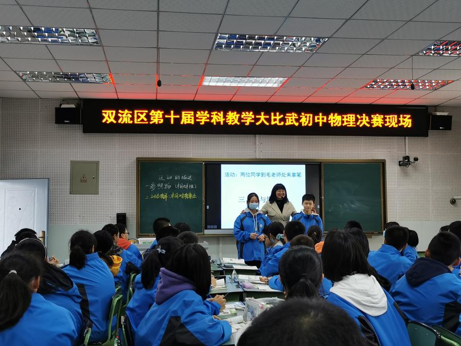 十年如一日,十年磨一剑。2020年11月5日,双流区第十届物理学科教学大比武决赛在双流中学实验学校如期举行。四川省物理教研员青春主任、成都市初中物理教研员郑其武老师、龙泉驿区物理教研员万斌老师、双流区教科院副院长李久和院长出席评委。学科教学大比武是每一个专业老师在专业上的追求和奋斗目标,在经过各学校的自主推选和区级较量,最终,7名选手脱颖而出,立足决赛的舞台,他们分别是:黄龙溪学校陈焘老师、棠湖外国语学校姜芹老师、九江初中淡红艳老师、双中实验学校刘曦萍老师、棠湖外国语朱小凤老师、双流艺体中学毛冬梅老师和棠湖中学的刘丽林老师。决赛将采取现场提前一小时抽签+现场展示+现场答辩的方式,来考验各位选手的学科知识积累水平和临场应变能力,短短一小时的准备,让每个选手都蓄势待发。