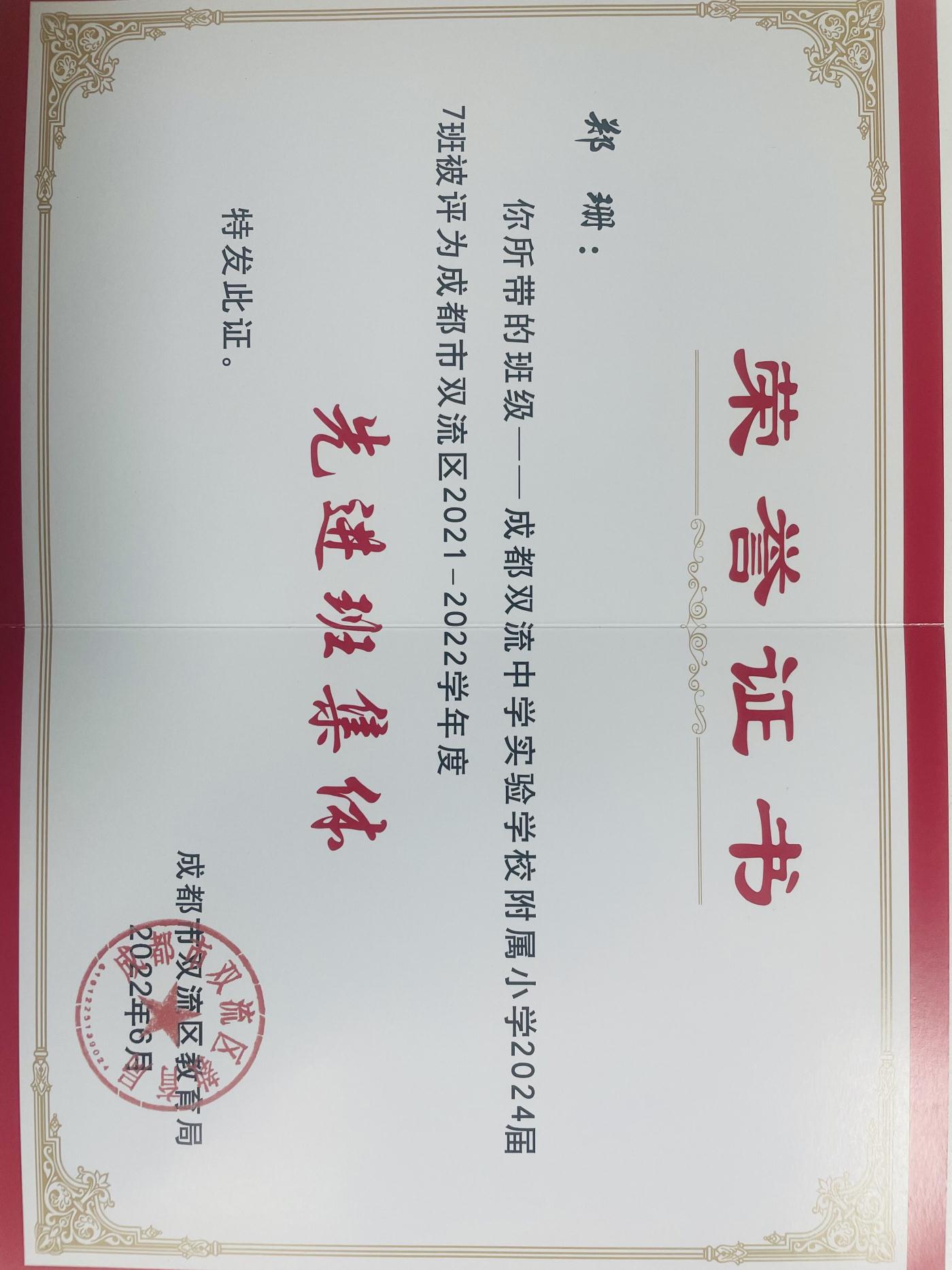 双流区优秀班主任