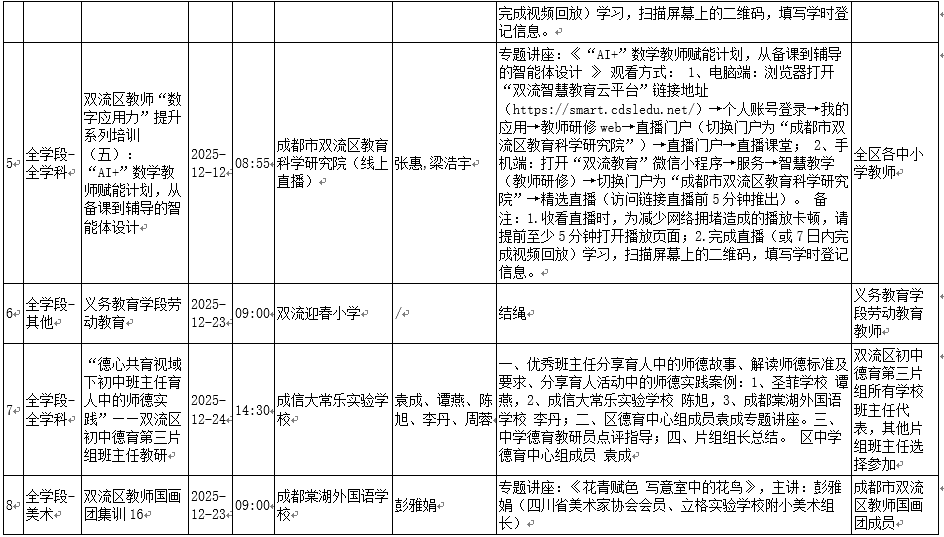 成都市双流区教育科学研究院全学段2025年12月学科研培活动安排