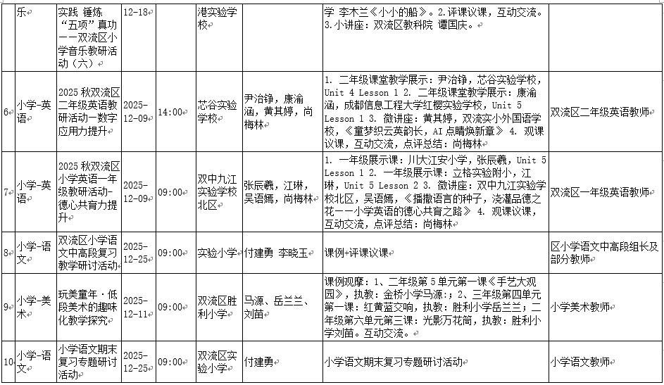 成都市双流区教育科学研究院小学室2025年12月学科研培活动安排