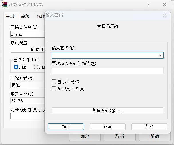 目前我们使用的压缩工具主要是WinRAR,winzip,7-zip等,这些工具都提供了加密功能。如果你的文件数量不太多,文件也不是很大的话,用压缩工具打包并加密是非常好的办法,以下以WinRAR为例介绍通过压缩软件给文件夹设置密码。首先电脑中需要安装好WinRAR软件,然后右键要设置密码的文件夹,windows11点击【显示更多的选项】,然后点击【添加到压缩文件】,设置好压缩的文件名以及储存路劲,选择好压缩格式,点击【设置密码】,同时有需求的用户还可以点击【加密文件名】,然后点击【确定】,最后在压缩文件名和参数的对话框中再点击一次【确定】,即可实现通过普通的压缩软件给文件夹设置密码。winzip,7-zip等的软件给文件夹设置密码的流程也大概如此。