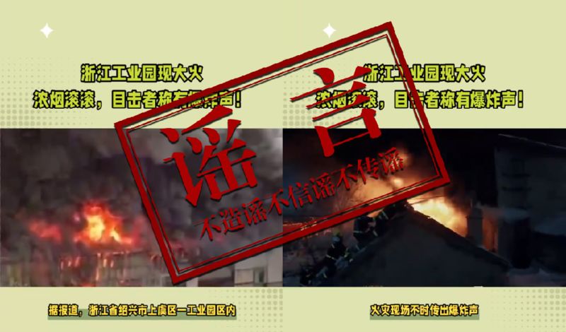 2023年6月,一条名为《浙江工业园现大火浓烟滚滚,目击者称有爆炸声!》的视频在网络上流传,引发网友关注。后经相关部门核实为谣言。