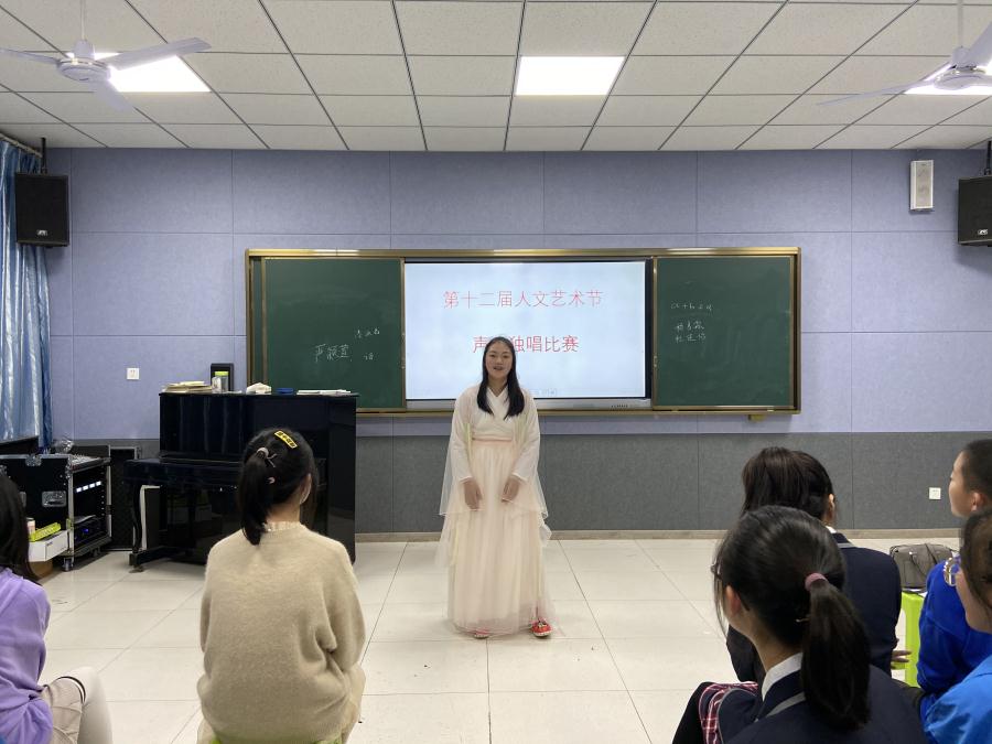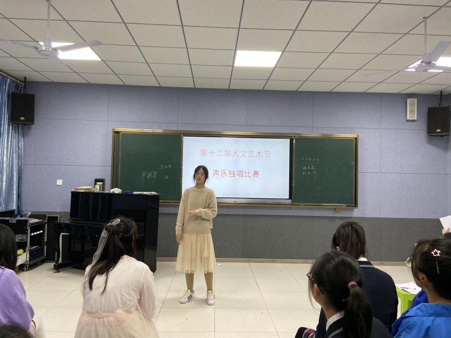 10月31日周四下午放学后,第十二届人文艺术节(艺术类)声乐比赛在音乐教室拉开帷幕,来自七八年级将近100名选手依次上台一展歌喉,选手们用精彩的表演赢得了现场观众的阵阵欢呼和掌声。