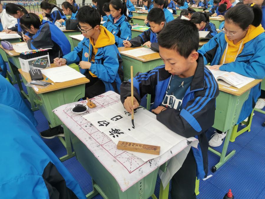 11月6日星期三下午,我校第十二届人文艺术节现场书画比赛在图书馆顶开展,73位学生参加比赛,在短短一个小时内展现自己的艺术才能。