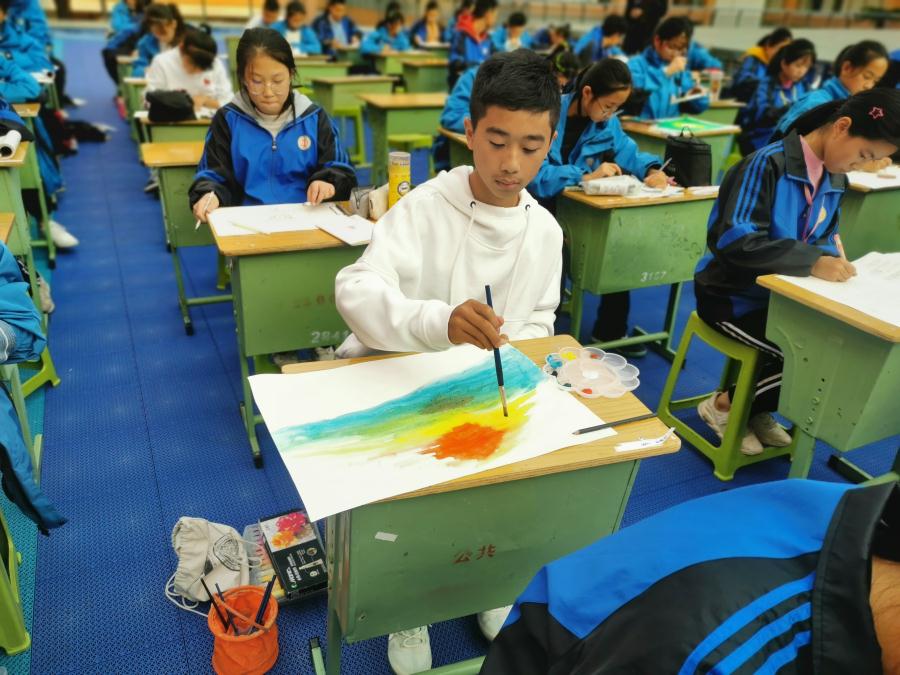 挥毫泼墨间一幅幅作品呈现了出来,五彩斑斓,种类多样,有水彩,有水粉,有素描,有软笔书法,有硬笔书法,还有传统剪纸。