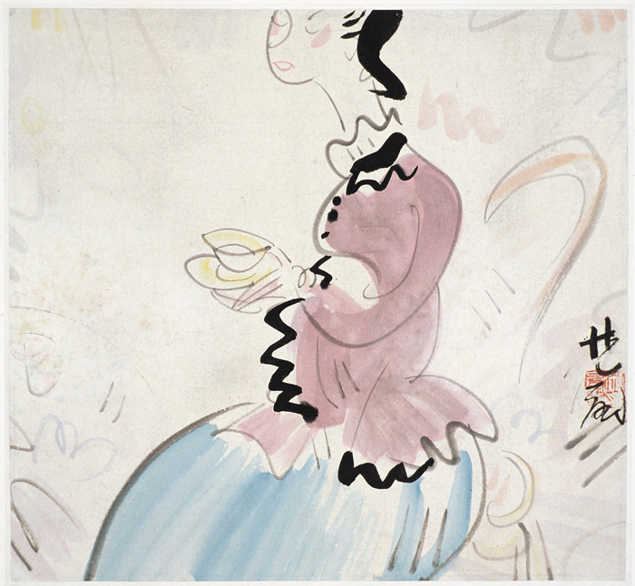 《品茗》 林风眠 纸本水墨设色 29.5cm×32cm 20世纪40年代 中央美术学院美术馆藏