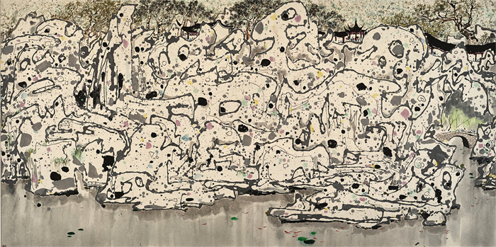 《狮子林》 吴冠中 纸本水墨设色 173cm×290cm 1983年 中华艺术宫(上海美术馆)藏