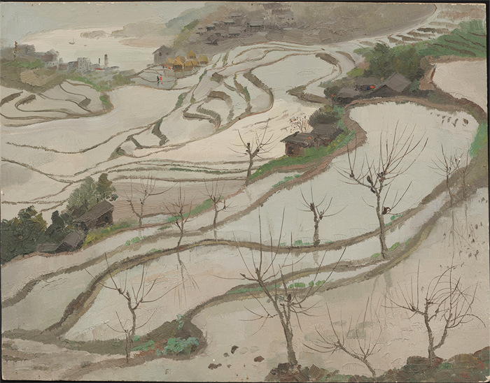 《水田(一)》 吴冠中 木板油画 47cm×60cm 1973年 中华艺术宫(上海美术馆)藏