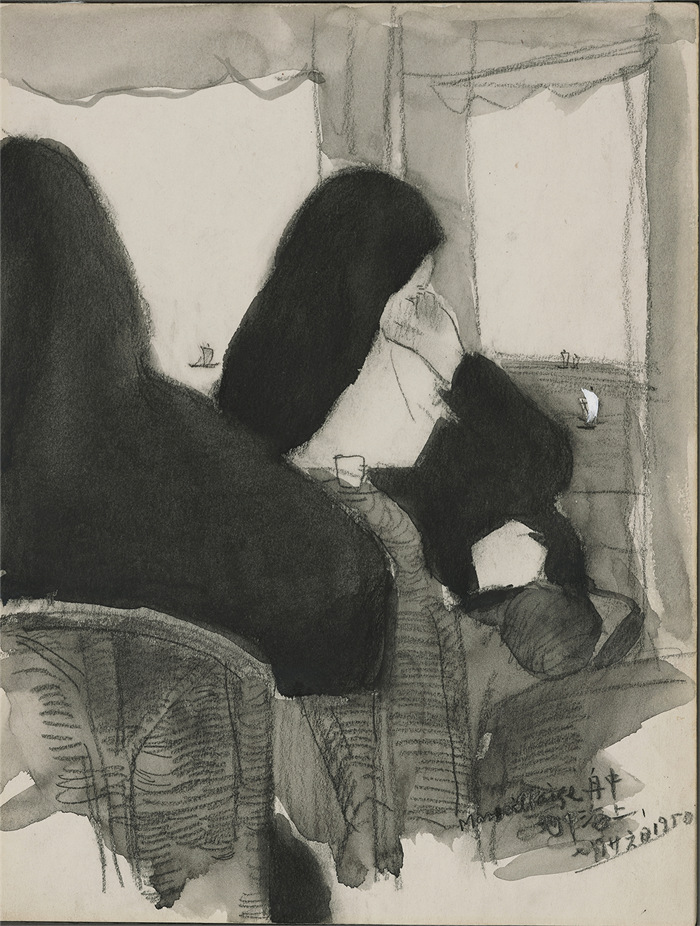 《旅途》 吴冠中 纸本铅笔、水墨 27cm×21cm 1950年 中华艺术宫(上海美术馆)藏