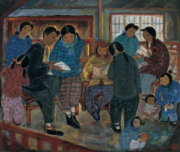 《读书声》 林风眠 纸本水墨设色 77.5cm×93cm 20世纪50年代 上海中国画院藏
