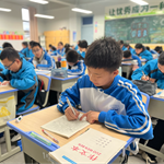 本次现场作文以“文韵青春”为主题,旨在引导学生从生活感知、文化积淀与青春思考中汲取灵感,书写当代少年的精神风貌。安静的录课室内,同学们凝神执笔,文思流淌,展现出良好的文学素养与创作热情。