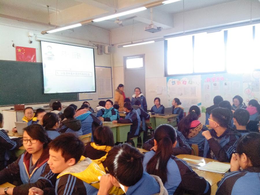 在王老师的展示课之前,我组贾友乾老师在九年级三班上了一堂题为《战争与和平》的汇报课。
