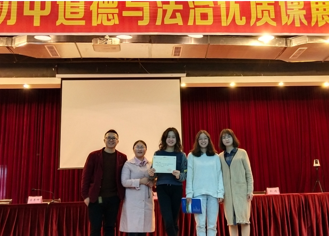 张薇老师(左四)参加成都市2019年初中语文课堂教学大赛获一等奖