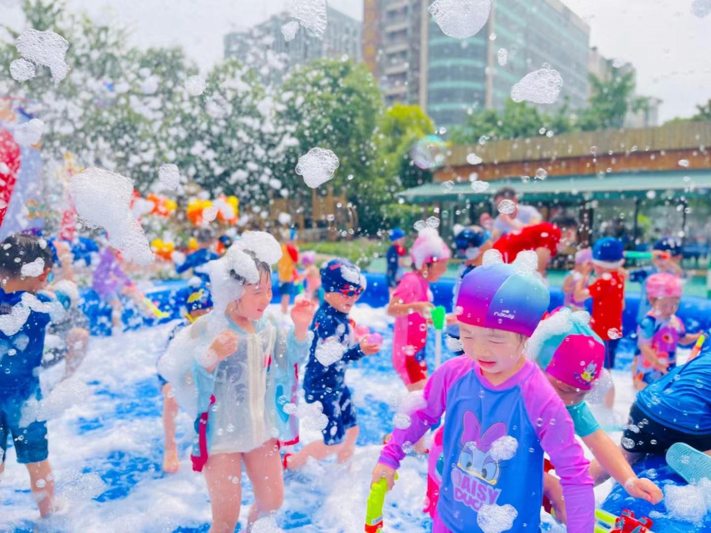 “淘出灵性,乐玩悦慧”,在“爱玩 会玩 慧玩”教育主张中,以“在游戏中促进幼儿的学习与发展”的理念为基础,以孩子们的天性之“淘”,淡化严肃性,强化趣味性,打造支持幼儿课程探究的“三生四场”的园所环境(三生:生活、生态、生本;四场:运动场、游戏场、学习场、生态场)。让孩子在游戏中学习、在游戏中创造、在游戏中发展,让儿童潜能全面释放的童年小院。