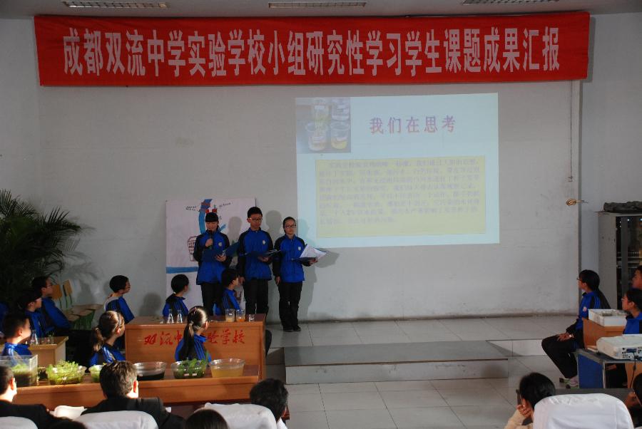 综合实践活动课是学校构建素质教育模式,实现育人目标的重要载体,学校拿出20%的课时来开发以课题探究性学习为特征的综合实践活动,让学生带着任务走出课本,去发现、探究、解决社会生产生活实际中的各类课题。目前,学校已建立校外综合实践活动基地16个,全员参与的活动课呈现出序列化、常态化、课题化的特点。通过开设综合实践活动课,学生自主学习能力得到了快速提高,学习方法也呈现出多元化,身上透射出更多的灵性和活力。在走进省科技馆、走进古镇黄龙溪、走进双流新城、走进杜甫草堂、走进双流水环境、走进城市交通等综合实践活动课程中,学生自主形成的探究方案和调查研究成果闪现出他们对社会对未来深入思考的智慧之光:科技实践活动《承载希望 放飞梦想——走进省科技馆》、《双流县城市河道——白河生态系统调查及治理措施研究》、《探知风云变幻 气象服务生活——校园气象观测与探究》获全国青少年科技创新大赛一等奖;《走进棠湖公园》、《投资与理财》等76节活动课参加全国学术年会获国家一、二等奖;《空中生态园——羊肚菌种植实践研究》、《实践探索 成就梦想——走进黄龙溪》、《太阳能光伏发电应用研究》科技实践活动获全国科创大赛一等奖、全国科创大赛二等奖、省科创大赛二等奖;《关注水资源 保护母亲河》课题研究报告获省二等奖;《探知风云变幻 气象服务生活》学生科技实践活动分别荣获全国、四川省科创大赛一等奖,同时荣获全国十佳优秀科技实践活动;《消灭福寿螺及福寿螺卵的研究报告》科学论文获得省科创大赛二等奖;《体验劳动,积极探究——走进彭镇种植基地》科技实践活动荣获省科创大赛一等奖、全国科创大赛二等奖。
