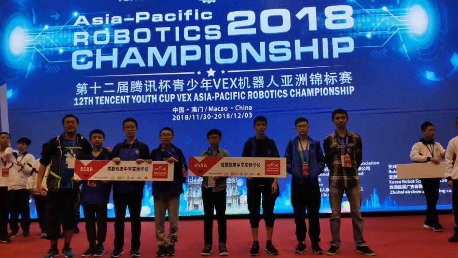 ●2018年VEX华西地区选拔赛,我校机器人队分别获得联赛亚军,技能赛亚军及比赛一、二等奖的荣誉。