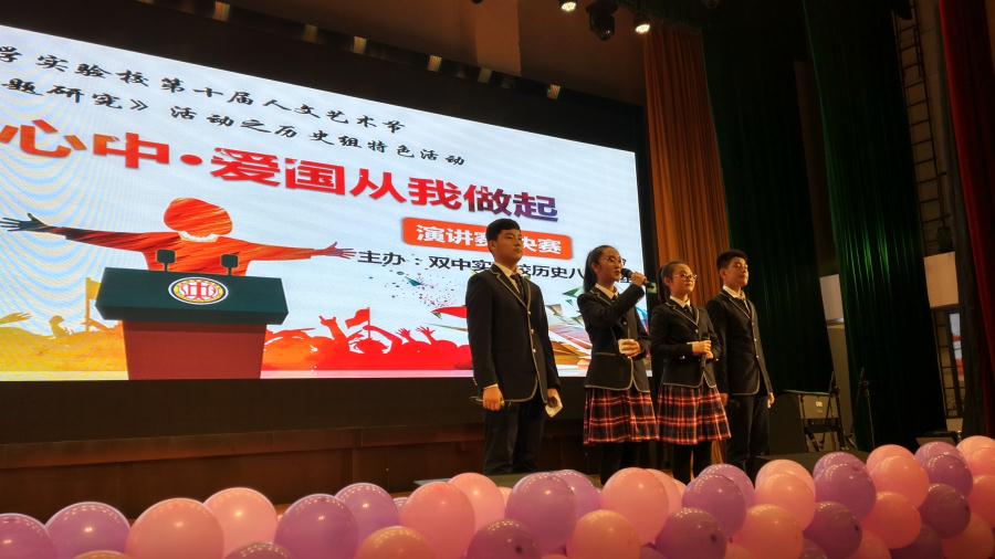 每学年举行的科技节和人文艺术节作为学校文化的两大重头戏,成为学生展示活动课、选修课创造成果的重要舞台。科技节的电子作品、科技小论文、小发明、科技DV、班级主页设计、鸡蛋撞地球实验、航模制作比赛、水火箭制作比赛、汽车模型比赛等项目让学生尽情地展示自己的科创才能,放飞科学梦想,科技节中许多富有创意的学生作品参加省市科创大赛屡获大奖。人文艺术节的英语活动月、政治辩论赛、现场作文赛、现场书画赛、行政区划拼图比赛、导游风采大赛、春芽诗会、英语圣诞晚会等活动精彩纷呈,学生朝气蓬勃的精神面貌和全面综合的才艺素质在这些活动中得以全面展示。