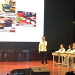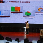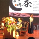 他们着古装,行茶礼,优雅大方,一上台就吸引了全场师生的目光。汇报前一段视频展示了四川茶文化的历史悠久。为了展示课题成员们的茶艺学习成果,骆迪同学走下舞台,诚挚邀请专家们上台品茶。学习茶艺多年,已具备茶艺师水准的毛草同学早已在茶台处等候,为老师们备上一壶茶。慢慢品味今天的学子问茶小组汇报。