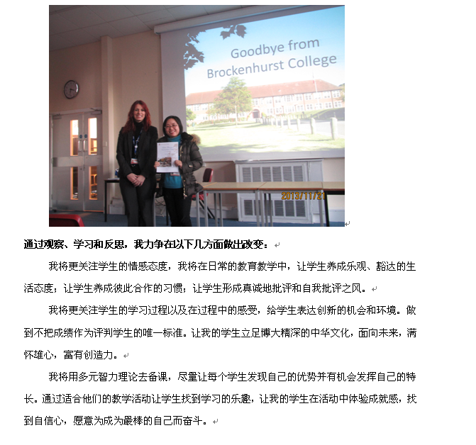 吴娟老师在英国布鲁克赫斯特学院培训