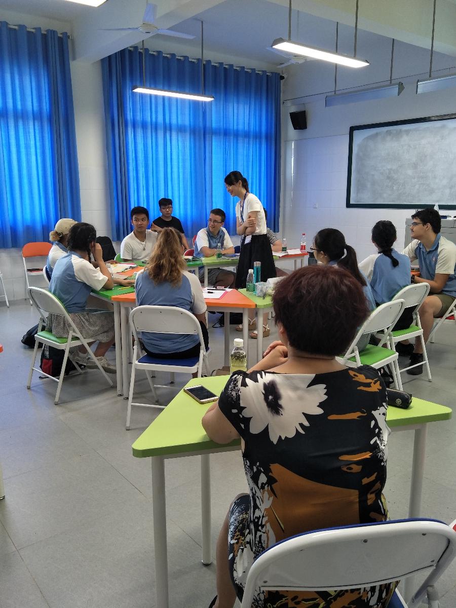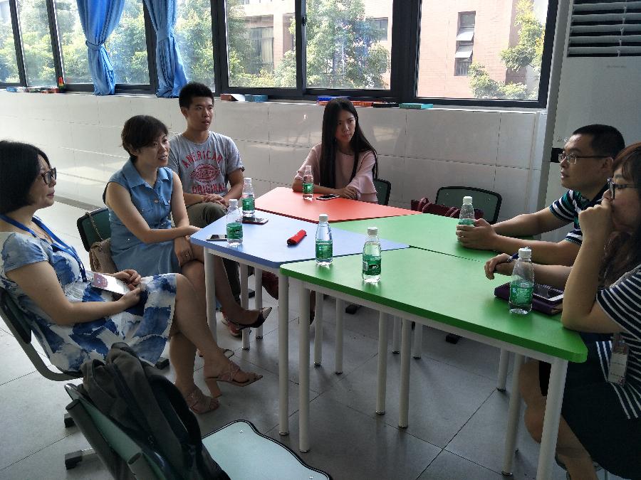 7月25日上午,中国教育国际交流协会中外师生交流项目办公室主任李阳一行四人专程从北京飞来我校,对AFS美国NSLI-Y项目进行中期考察及指导。我校项目负责人,外事办杨红主任将我们前四周的汉语课程、各项文化体验课、综合实践活动课的实施情况一一作了介绍。英语组教研组长李征老师就项目的日常管理,与学生及接待家庭家长的日常交流情况向李主任做了汇报。李阳主任从我们提供的图片、文字、视频等资料里,非常直观地看到了我们在这期间的教学活动、各项实践活动的场景。她对我们的课程设置、日常管理工作的细致落实给予了高度评价,尤其对我们每天详尽的“项目工作日志”这一记载方式给予了充分地肯定。对于我们开设的各项极富特色的文化体验课(茶艺、太极、民族歌曲、水墨画等),社区服务活动(美国学生去双流图书馆做英语教学志愿者;在双流敬老院为老人们理发、敬茶、打扫卫生、表演节目、赠送礼物等)李主任也表现出了浓厚的兴趣。李阳主任说:“你们是近几年承担此项目的学校中,日常管理最细致最有新意,上课老师素质最高的!这个项目交给你们学校,我们非常放心、非常满意!”