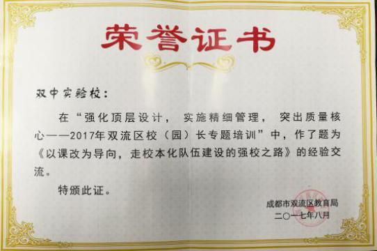 “2017年双流区校(园)长专题培训”会双中实验校作专题发言