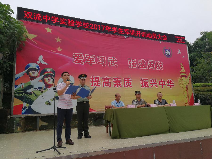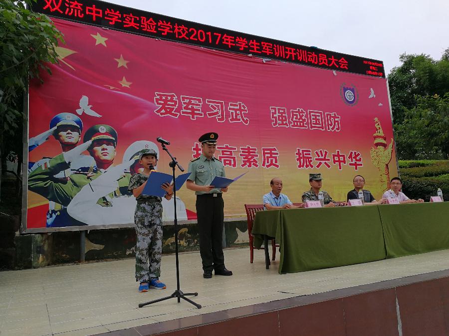 最后德育处王俊老师代表学校进行了发言,鼓励同学们在军训期间严格要求自己,发扬吃苦耐劳的精神,遵守各项纪律和生活秩序,提高自我教育和管理的能力,要充分展现双中实验校学子的风采,在军训中磨练意志,不断成长。在此,预祝此次军训活动能够圆满完成!