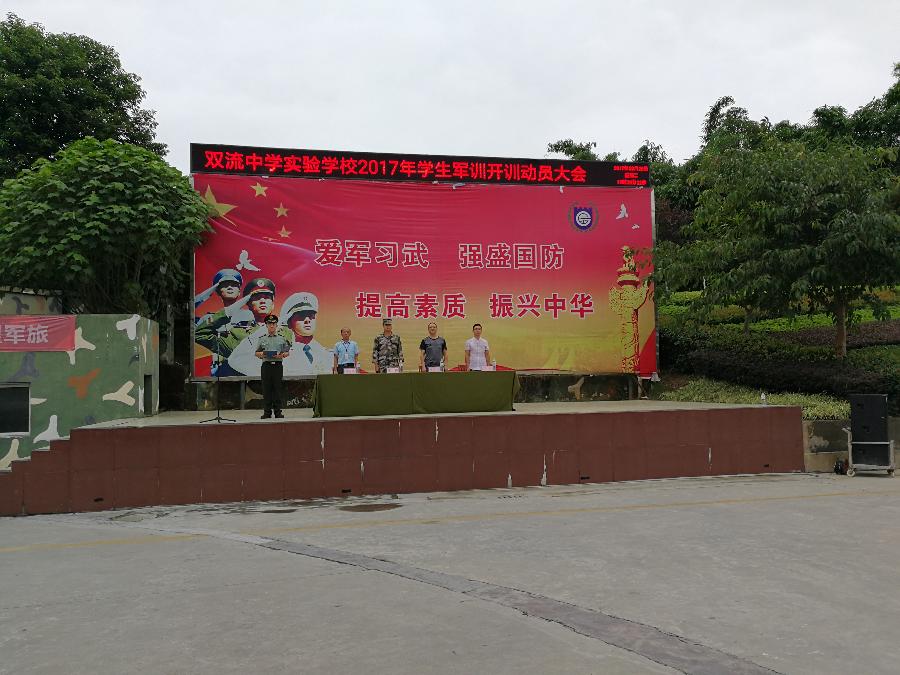 最后德育处王俊老师代表学校进行了发言,鼓励同学们在军训期间严格要求自己,发扬吃苦耐劳的精神,遵守各项纪律和生活秩序,提高自我教育和管理的能力,要充分展现双中实验校学子的风采,在军训中磨练意志,不断成长。在此,预祝此次军训活动能够圆满完成!