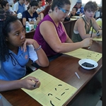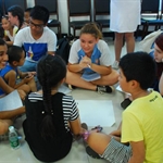 8月2日下午,美国青年来到了黄水镇参加社会实践活动。此次社会实践是走进中国社工,走进南柳社区。首先,在当地社工的带领下,美国学生参观了社区农民的新居所,看到了中国新农村的新风貌。随后来到社区服务中心参加活动,由楠柳社区党委书记对美国学生的到来致欢迎辞后,美国学生与当地参加暑期夏令营的小朋友展开了互动活动。活动内容十分丰富,有教读古诗词、打太极、写书法等。中国小朋友用10分钟时间教会美国学生念《忆江南》等几首古诗,小朋友们很聪明,标拼音、教字形,很是认真。美国中学生也不得了,学了10分钟后展示的朗诵有模有样。接着角色换位,中国教练教太极一遍,美国学生将所学太极教给刚才的古诗小老师,认真劲儿十足。最后中美孩子一起跟着中国教师学书法。活动中,我校老师们与南柳社工一起积极投入,发挥着重要的组织与指导作用。