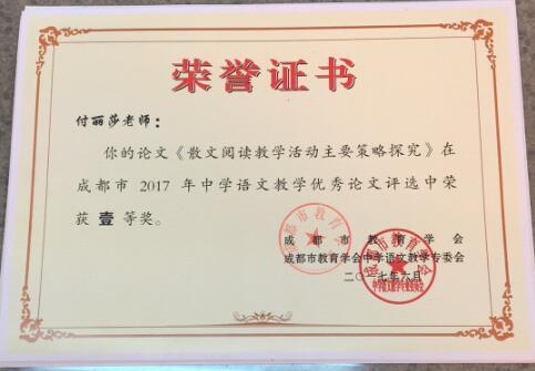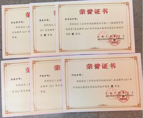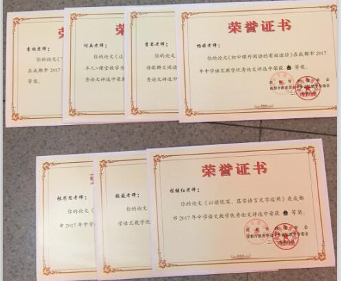 中学语文教学优秀论文评选中,我校语文组刘瑛、何向、付丽莎等