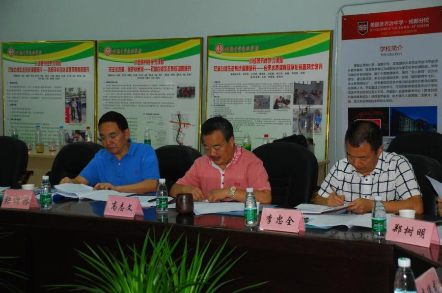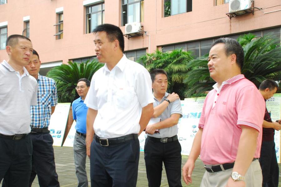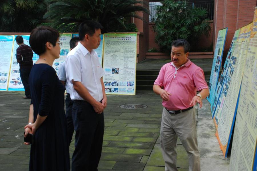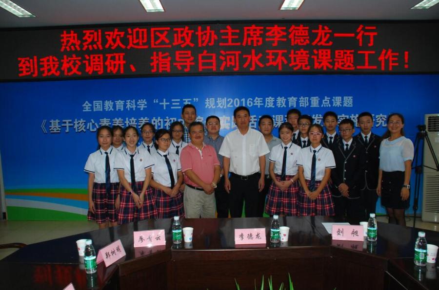 2017年9月18日下午2时,双流区政协主席李德龙、副区长杨春禧、区政协副主席刘昶、区教育局局长李光纯、区水务局局长尹宏波、及环保局相关领导等一行莅临我校调研并指导白河水环境课题工作。