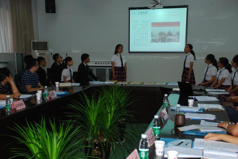 2009年,《关注水资源,保护母亲河——双流区白河污染调查及治理措施研究》的课题应运而出。在课题指导老师李春燕等的指导下,已有三届学生对白河近9年的改变和现状进行调查和探究。在本次调研中,本届课题组学生首先向莅临学校的各位领导作了近几年的课题成果汇报。短暂的汇报,再现了研究的过程,学生谈到,从最初到现在,看着母亲河环境日益变好,他们觉得很兴奋,他们更享受课题研究的整个过程。正如孩子们所说,他们是来自不同地区的孩子,却做着同一件事情——为保护我们的母亲河贡献自己的微薄之力,接着,指导老师李春燕汇报课题组自09年至今调查研究白河水环境情况,在这一过程中,李老师提到非常感谢各部门对课题的大力支持,也非常感谢在课题研究过程中水务局对我校课题所提供的帮助。正是因为有了各相关部门、专家的帮助和支持,有了双中实验以及这群愿意付出和思考的学生,我们的明天会更美好。