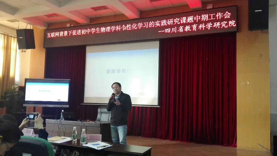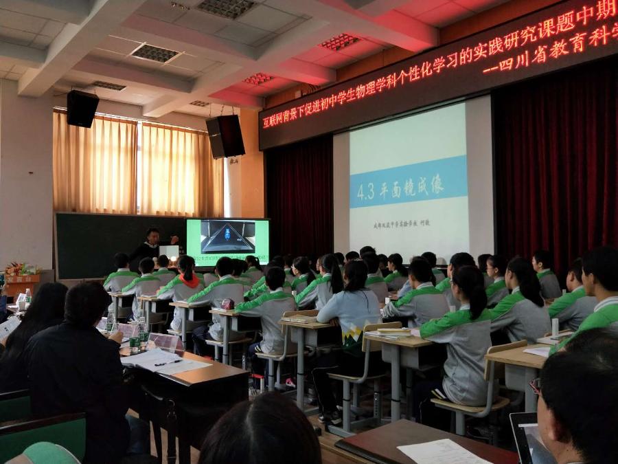 10月26日下午,四川省教科所组织的《互联网背景下促进初中学生物理学科个性化学习的实践研究》主题教研会在省物理教研员宋怀彬老师的主持下在高新区新源学校顺利召开。来自成都、泸州、自贡、绵阳、攀枝花等市教科院的20余名物理教研员和200多名初中物理骨干教师参加了会议。我校物理组何铁老师上展示课执教《平面镜成像》,获得专家和同行的一致好评。