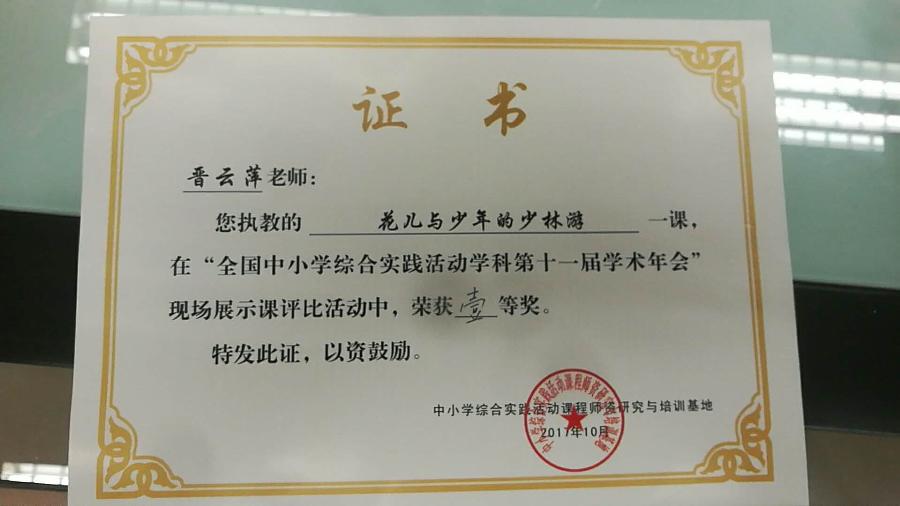 最终,晋老师的《花儿与少年的少林游》获得本次年会展示课一等奖!(历史组 范勇波)