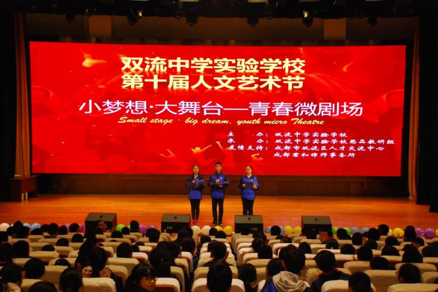 经过一个多月的集中排练,在万众期待中,于2017年11月22日在双流中学实验学校国际部多功能厅开始了他们的表演秀。学校高志文校长,张润林副校长、刘主任、周主任、文主任、王主任、罗主任莅临现场,历史、地理。生物教研组嘉宾、家长代表、七年级部分班级参加了此次活动。