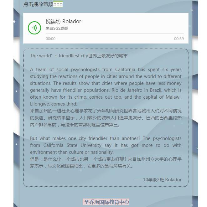 圣乔治II悦读坊“Reading Fun”第三期