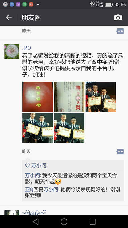 远在阿坝州的学生家长李铮铠妈妈当晚在微信朋友圈中说:看了老师发给我的清晰视频,真的流了欣慰的老泪,幸好把孩子送到了双中实验!感谢学校给孩子们提供了自我展示的平台。