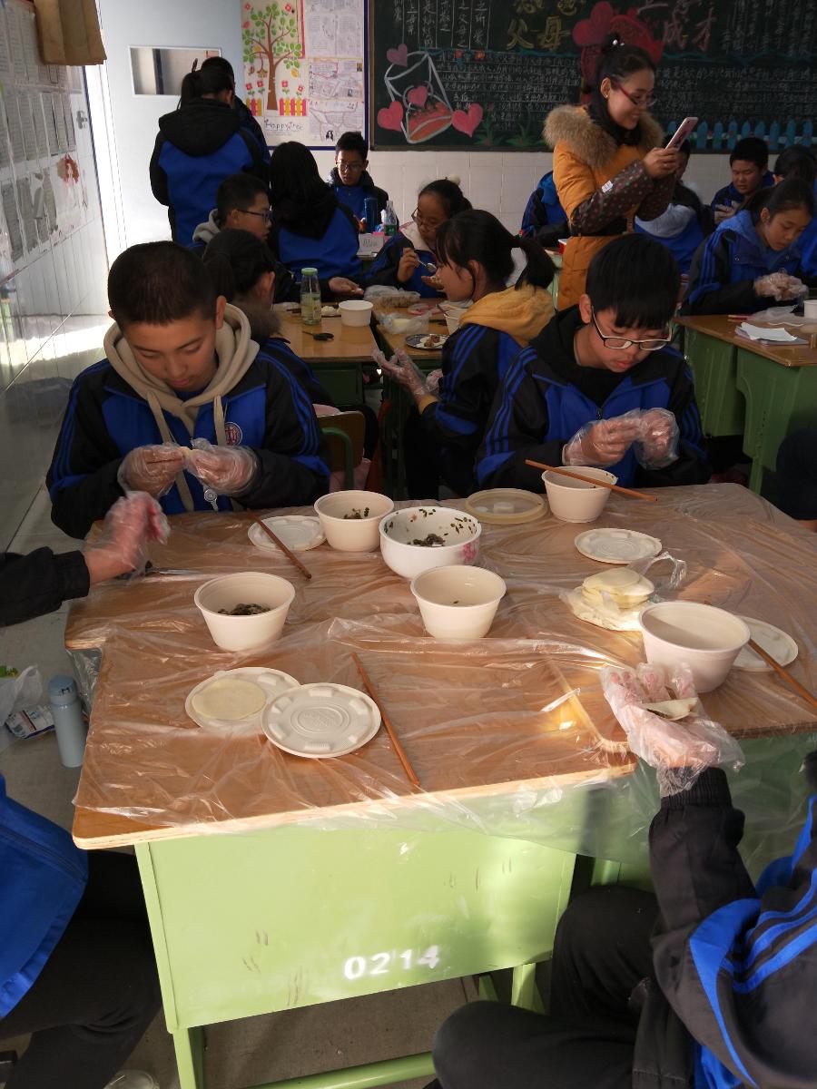 2017.12.8周五,热闹愉快的气氛弥漫在七年级整个教室角落。这到底是怎么回事?原来这周五的最后一节课在进行劳动技术包饺子检测活动。让同学们亲自体验包饺子的乐趣。