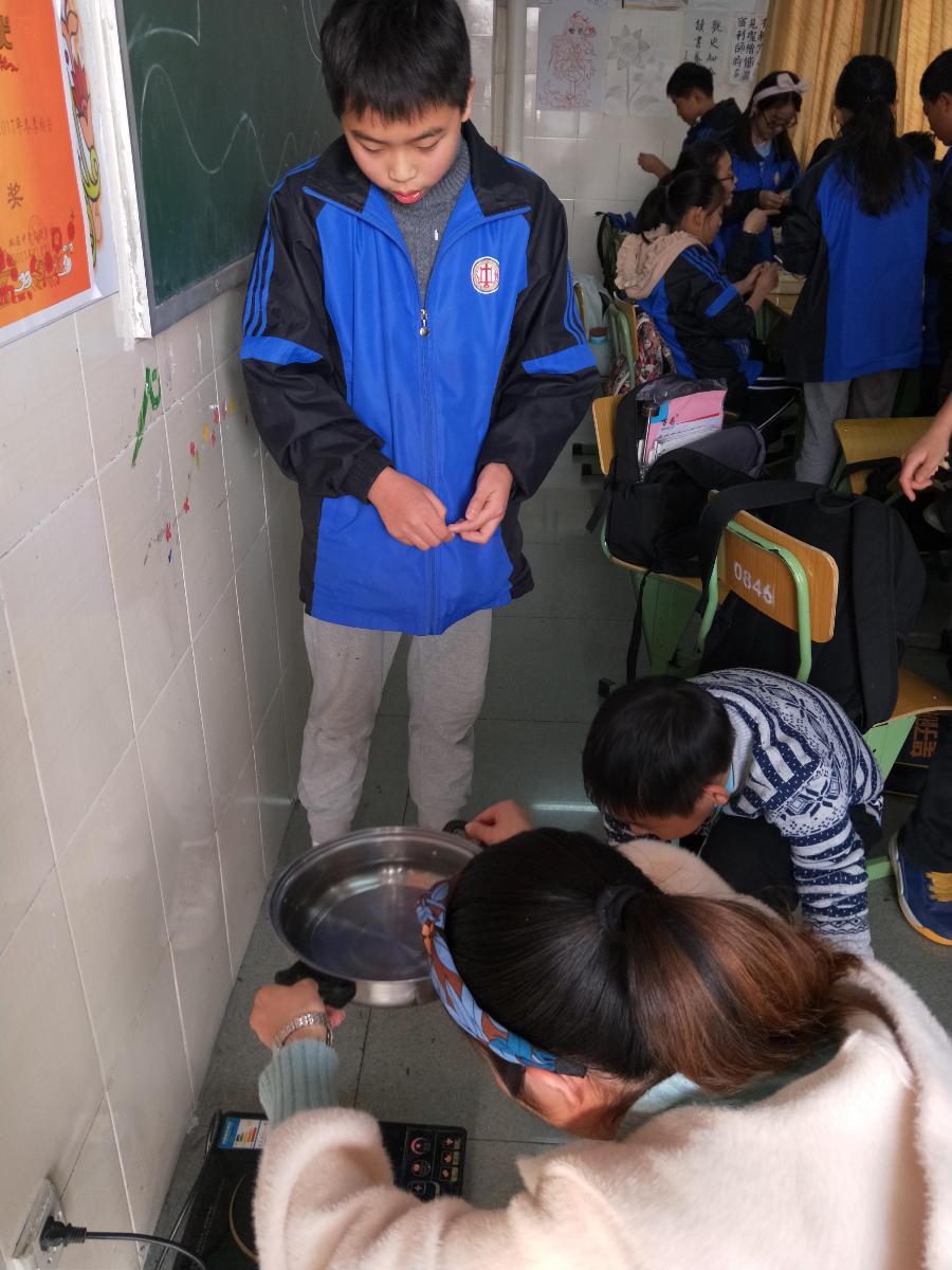 最后大家就趁着这高兴的劲,赶紧让老师帮我们煮饺子,老师拿来电磁炉和锅,烧开了水,下饺子,同学们都恨不得马上可以品尝到饺子。终于,饺子开锅了!大家拿出碗筷来捞饺子。