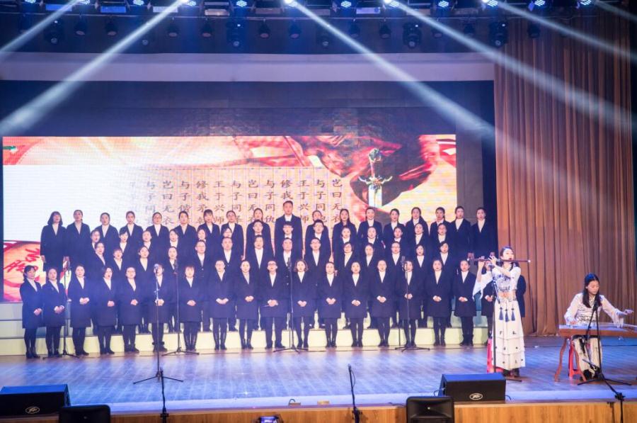 双流区第十一届教职工集体项目活动“国学经典诵”比赛于2017年12月23日在棠中举行。为参加这次活动,我校中小学联合组建了一支73人的庞大队伍,由语文组和艺术组牵头,精心选材、巧妙设计,学校领导亲自坐镇参与训练。我们的参赛作品是《古今纵论家国梦》,由《国风•秦风•无衣》和《满江红》这两首经典曲目共同组成,紧扣当下时代主题。经过一个多月的刻苦训练,我们整个团队各司其职,精诚合作,最终以卓越的表现震撼全场,荣获一等奖,再次向世人展示了“双中实验”的实力与风采!