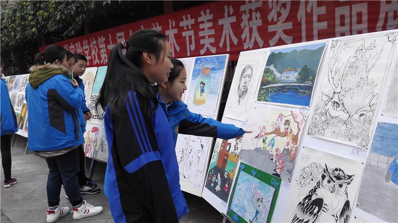 为了丰富学生的课余文化生活,展示学生的风采,全面提高学生的综合素质,进一步营造人文艺术节气氛,推动校园文化建设再上新台阶,12月22日,由德育处主办,艺术组承办的第十届人文艺术节绘画书法摄影优秀作品展在多功能厅前小广场举行。 本次活动收到全校同学三百多件绘画书画摄影作品,参展的有两百余幅。这些作品主题鲜明,内容丰富。书法或工整隽秀、或挥洒自如、或浑然古朴;绘画笔墨淋漓、激扬山河;摄影主题鲜明、色彩斑斓。 本次展览丰富了同学们的课余文化生活,提升了审美情趣,为校园文化增添了浓墨重彩的一笔。