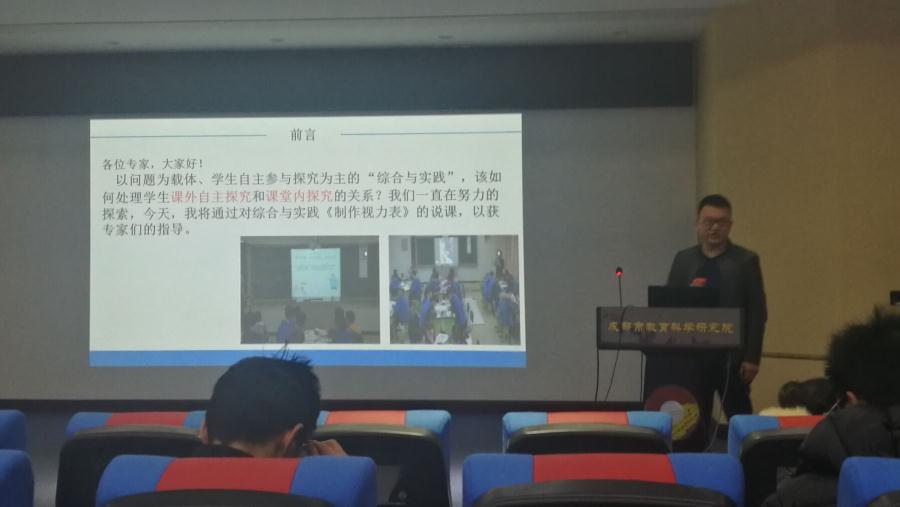 2017年12月20日,“2017年成都市中学数学优秀课展评活动”在成都市教育科学研究院举行,我校程国斌老师执教的综合与实践《制作视力表》在初中组的52节课例中脱颖而出,得到了大赛评委的一致好评,荣获“初中组一等奖”。评委谢祥(成都市金牛区数学教研员)这样评价本节课:“这是本次参赛的唯一一节综合实践课,选题新颖,相当有挑战性,很佩服你的勇气,敢在这样的比赛中做新的尝试,同时本节课对核心素养的落实到位,是一堂值得借鉴和推广的示范课。”