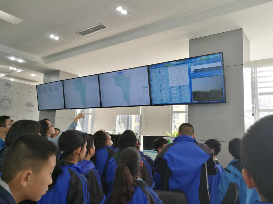 接下来,我们来到了气象台监测的核心——监测中心。进入监测大厅后,大家立即被眼前大大小小的屏幕上的影像吸引住了。气象台的工作人员是如何利用这些图像预报天气状况的呢?气象台的李老师为我们做了详尽的介绍。