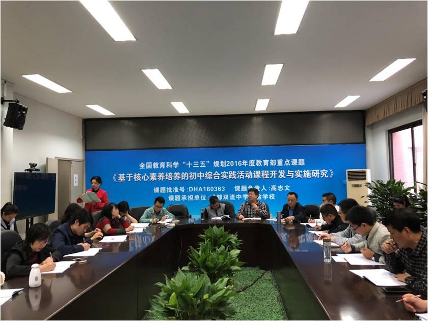 2018年4月2日星期一,双流中学实验学校综合实践活动课题组四月例会如期举行,参加本次会议的有校长高志文、教务处主任周宗友、校长助理罗晓章、课题组组长付兵,以及课题组所有的教师成员。