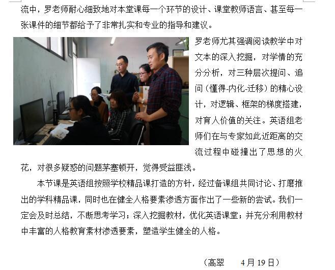 专家引领,国际交流,践行英语课堂核心素养培养