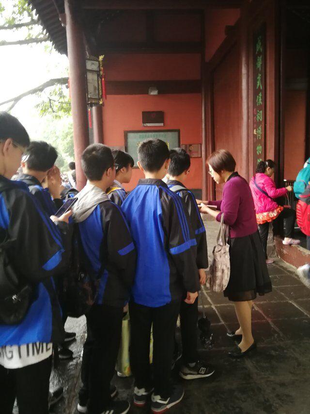 为了更深入了解三国历史文化,致敬中国先贤圣哲,我校针对语文、政治和历史学科的特点开展了“走进武侯祠”外出综合实践活动。实地考察前师生已经作了充分的准备,拟定好班级课题和小组子课题、设计课题研究方案、网络资料查询等。本次实地考察则是同学们带着自己所关注的问题和课题任务,到武侯祠以小组的形式开展调查探究。同学们从刘备殿、诸葛亮殿、三义祠一路沿着中轴线浏览,并在游览过程中询问导游、采访游客、拍摄照片等,并且记录下不懂的问题,团结、认真、合作地完成了小组的课题任务。