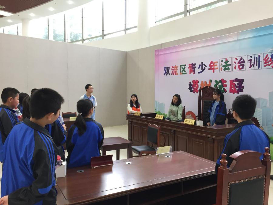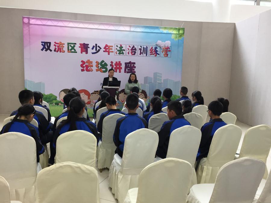 为学习法律知识,提高青少年法律意识,2018年5月10日下午,我校《青春与法律同行》选修课全体学生应邀参加双流区青少年法治训练营活动。
